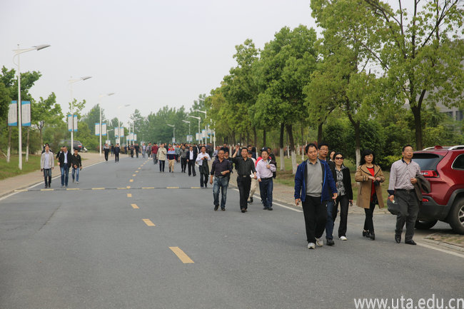教职工们在学院西门起点集合、留影,一番简单的热身后,健身走活动正式开始。大家昂首阔步,意气风发,沿着校园环路欢快健走,从西门旗杆处出发,途径南大门,延环路至东门,再到达图文信息中心下。暖暖的阳光洒满校园,清新的空气夹杂着香樟树特有的芬芳迎面扑来,佳木繁秀、绿草如茵,校园美景尽收眼底。大家一路欢声笑语,尽情地享受着运动的乐趣,欣赏美景的同时,也增近了彼此间的情感交流。