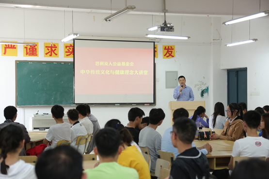 本次大讲堂由无限极(中国)有限公司业务项目部主任胡曼娜和许权担任主讲。胡曼娜以“养生固本,健康人生”为主题,介绍了中医药养生文化健康理念,还和同学们互动学习健康养生操,让同学们在轻松愉快的气氛中,了解了健康行为和积极心态的重要性。许权介绍了无限极独特的企业文化。他以程门立雪、黄香温席、毛遂自荐等成语故事,引导同学们尊重师长、孝敬父母、勇于担当,希望同学们做事先做人,做人品先行。