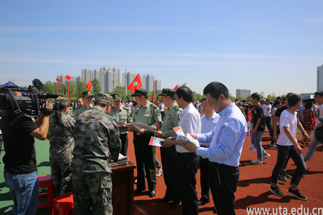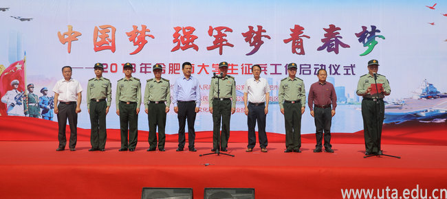 本网讯(保卫处通讯员 王胜璋)为贯彻全国和安徽省大学生征兵工作会议精神,加大征兵宣传工作力度,推动征兵工作扎实有效进行,5月4日上午,2018年合肥市大学生征兵工作启动仪式在我校运动场举行。合肥警备区司令员朱毅,合肥新站高新技术产业开发区党工委副书记、管委会副主任汪义军,合肥市征兵办公室,合肥警备区,合肥市委宣传部,瑶海区人武部、宣传部,学院副校长陈行等有关领导出席启动仪式。安徽中医药大学、安徽广播影视职业技术学院等6所高校2000多名学生代表和征兵工作同志、瑶海区人武部全体干部职工参加启动仪式。启动仪式由瑶海区委常委、区人武部政委丁秀雅主持。