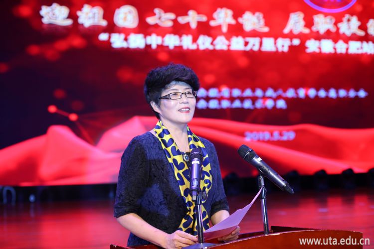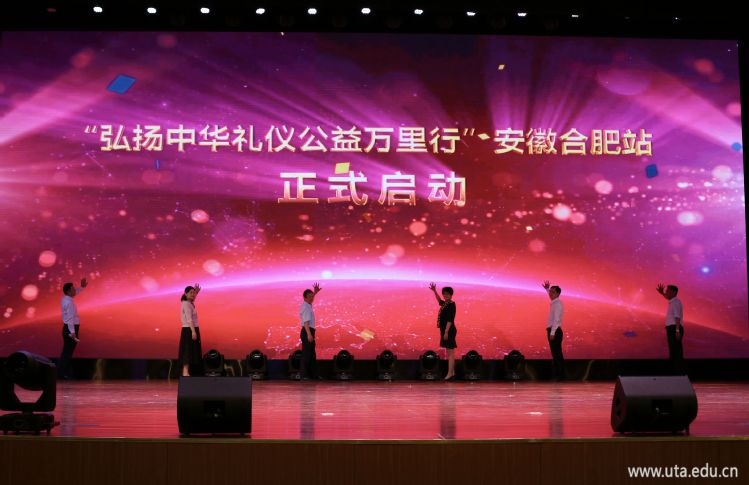 本网讯(院团委通讯员 徐李莉 史歌)为弘扬中华礼仪文化,展现时代职业风采,提升全民素质, 振兴民族精神,5月29日下午,由中国职业技术教育学会发起的“弘扬中华礼仪公益万里行”安徽合肥站启动仪式在我校大学生活动中心隆重举行。中国职业技术教育学会人文素质教育专委会副会长、礼仪文化教育研究中心主任蔡少惠,合肥新站高新区社会事业局高教处处长陶跃红,学院党委书记亓四华及相关职能部门负责人出席活动。启动仪式由副校长陈行主持。