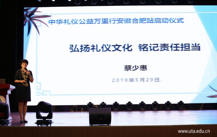启动仪式结束后,蔡少惠为现场嘉宾及广大师生作了题为《弘扬礼仪文化,铭记责任担当》的礼仪专题讲座。