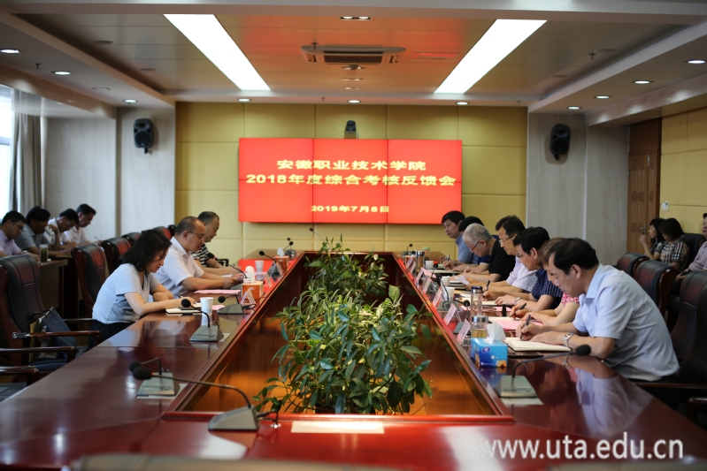 李方泽代表考核组反馈了2018年度学院综合考核的基本情况,通报了2018年度我校领导班子综合考核等次为“优秀”。他在反馈中指出,安职院领导班子政治立场坚定,发展思路清晰,认真努力敬业,总体运行状态良好。他表示,安徽职业技术学院坚持以人为本,不断注重办学能力的提升,不断提高育人能力和教师的教科研能力;在党建方面,学院注重理论武装,从严治党,认真落实党建工作任务,统筹推进党建工作取得新的成效。同时,李方泽也指出了存在的问题与不足,提出了整改意见与建议。