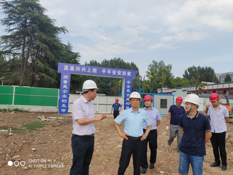 本网讯(基建处通讯员 程孝鹏)近期,合肥市区天气持续高温炎热,党委书记亓四华、校长孙敬华冒着酷暑在党委委员马纯、基建处处长吴自强的陪同下来到新校区学生宿舍和老校区安置小区项目施工现场,查看项目进展情况,看望高温下坚守在施工一线的员工。