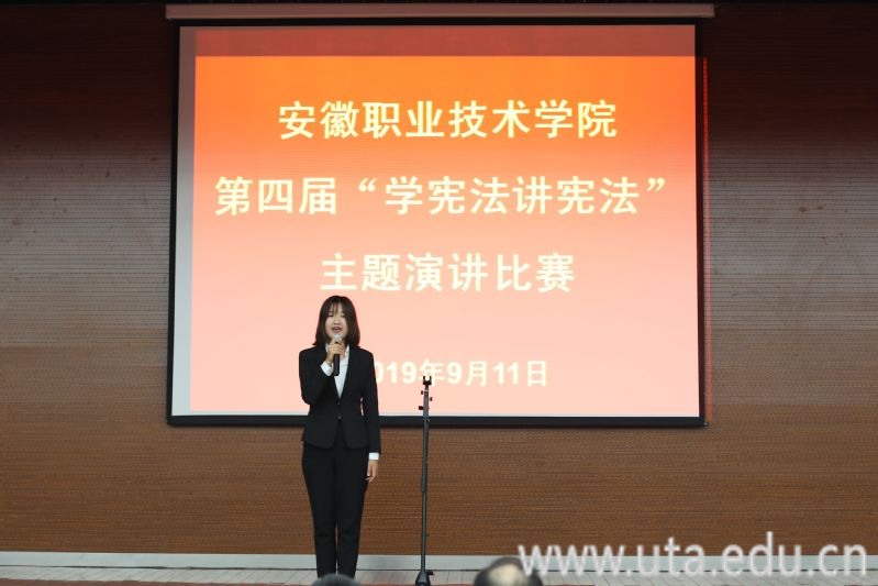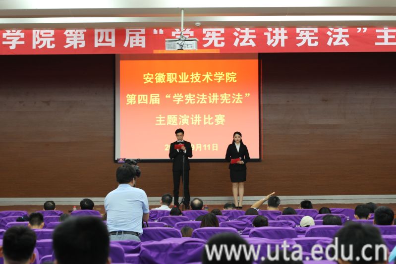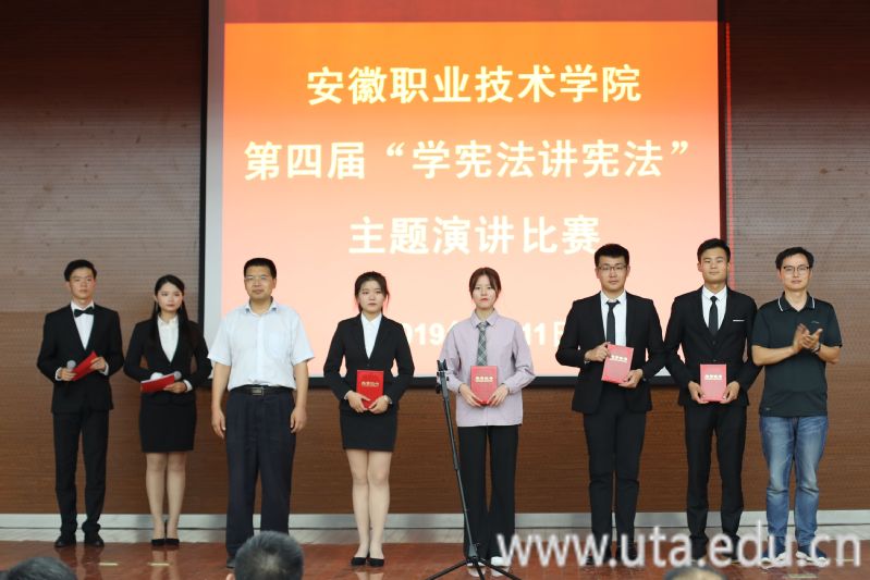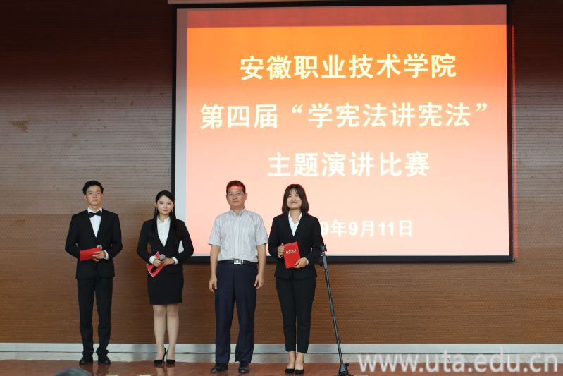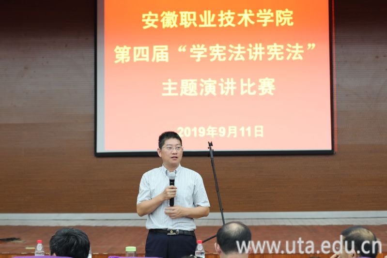 本网讯(党委宣传部通讯员 张剑桥)为深入学习领会习近平新时代中国特色社会主义思想,落实中央关于深入学习宣传和贯彻实施宪法的有关精神,广泛开展宪法宣传教育,选拔优秀选手代表学院参加安徽省第四届“学宪法讲宪法”主题演讲比赛,9月11日下午,安徽职业技术学院第四届“学宪法讲宪法”主题演讲比赛在图书馆三楼报告厅举行。党委委员、组织部部长杨林国,院团委负责人、马克思主义学院直属党支部负责人及二级学院党总支负责人应邀担任评委。
