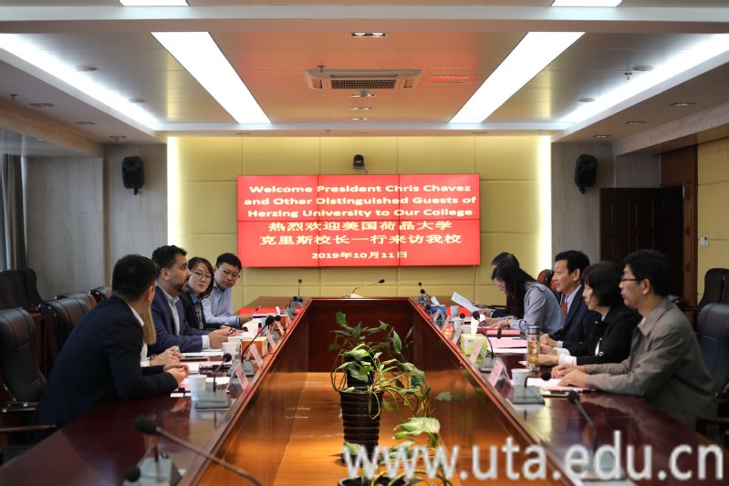 本网讯(校办公室通讯员 桂小黎 )10月11日,美国荷晶大学院长克里斯·查韦斯一行五人来我校访问。校长孙敬华热情接待了克里斯校长一行。办公室、信息工程学院等部门负责人参加了交流会。