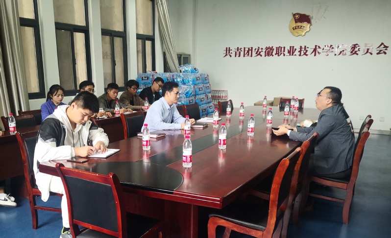 10月22日,安徽城市管理职业学院团委书记何长龙一行到我校考察交流共青团工作。院团委书记蒋成义、团委相关老师、校级团学组织主要学生干部陪同交流。
