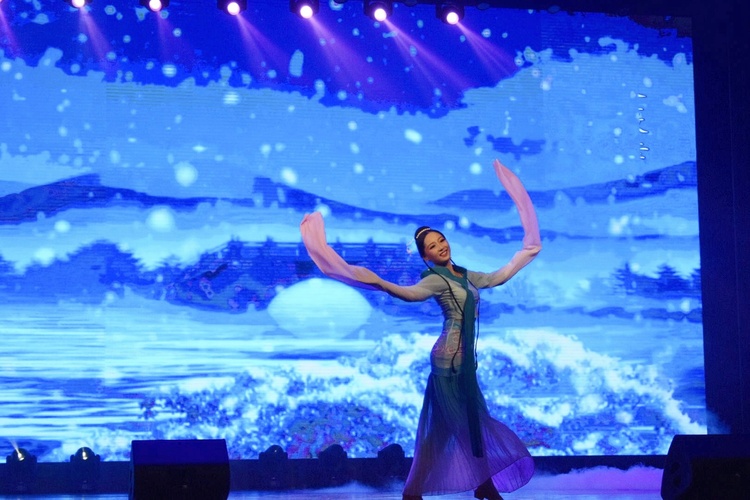 晚会分四海同庆盛世欢歌、梦回华夏继往开来、携手奋进青春激昂三个篇章。婀娜多姿的中国舞《雨中花》让人如痴如醉;满怀深情的歌曲《红旗飘飘》激荡全场师生真挚的爱国情感;慷慨激昂的朗诵《可爱的中国》,饱含深情,催人奋进;悦耳动听的合唱《梨花又开放》,旋律优美,和声丰满,给人美的享受;衣袂飘飘的古典舞《采薇》展现了中国女性柔美内敛的一面;热辣动感的韩舞串烧将晚会气氛推向高潮,大礼堂掌声不断。
