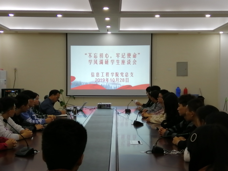 10月28日,信息工程学院在信息楼401会议室召开了“不忘初心、牢记使命”学风调研学生座谈会。来自大二大三的的28个班级,共计约80名学生代表参加会议。座谈会由学院党总支副书记李洪主持。