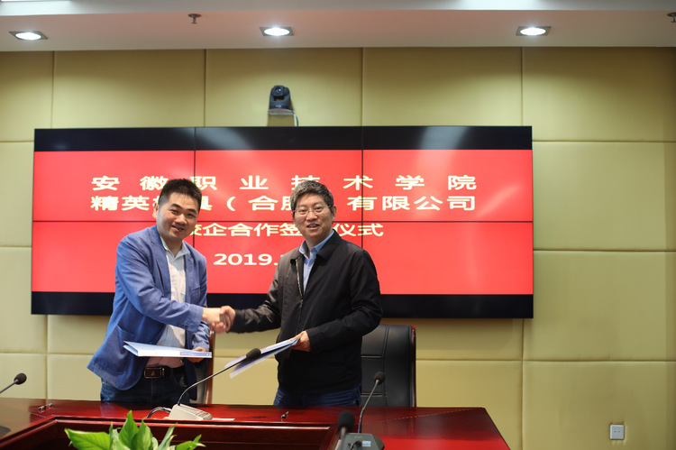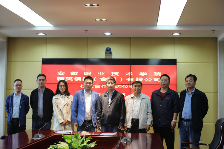 本网讯(建筑工程学院通讯员 谢金刚)10月25日上午,我校与精英模具(合肥)有限公司校企合作签约仪式在图文信息中心九楼会议室举行。精英模具(合肥)有限公司模具部经理胡孔贵,人事行政主管李艳清,党委委员、组织部部长杨林国,建筑工程学院党政负责人等出席仪式。仪式由建筑工程学院副院长蒋庆华主持。