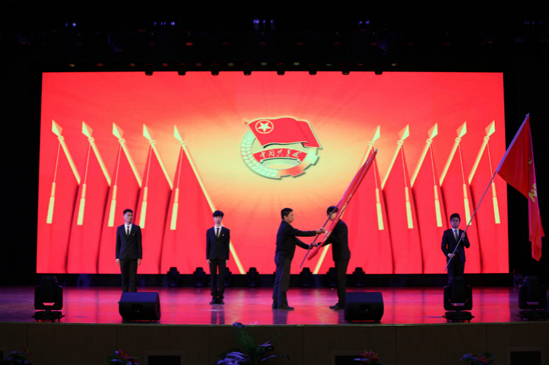 大会在共青团团歌《光荣啊!中国共青团》中拉开帷幕。会上,学生处处长潘瑞春宣读学院第十六届团学组织学生干部任职通知,党委宣传部负责人黄学文、保卫处负责人方庆华为新一届团学组织干部颁发聘书,党委委员、组织部部长杨林国为学生组织授旗。