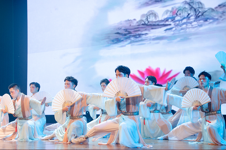 晚会分为“艺彩纷呈”“情深艺重”“艺气风发”三个篇章,以艺术专业学生风貌、学习实践为主线,刻画了动人的同窗情、难忘师生情和悠悠的家国情。晚会在动感十足的现代舞《POPSTAR》中拉开帷幕,瞬间点燃全场的气氛。在第一篇章,歌曲《没有什么不同》讲述了同窗从懵懂青涩到共历美好的校园时光,怀念从晨曦日暮到四季长歌的青葱岁月;小品《男生宿舍》则通过发生在校园生活中的幽默轶事表现室友之间真挚的情感,幽默的语言和夸张的表演赢得现场观众阵阵掌声;古典舞《茉莉花》则将古朴的中国风和演绎的淋漓尽致。在第二篇章,由校健美操大赛冠军队伍带来的节目《绽放》尽显艺设学院学生的活力和激情;舞台剧《南疆支教日记》结合学院毕业生—西部计划志愿者华巧同学的真实经历,号召艺设学子将个人与时代使命相结合,勇于担当、敢于历练,用优异表现向学院、祖国和人民交上一份满意的答卷。手影舞《艺忆不舍》、组诗朗诵《匆匆那年》伴着优美的旋律表达出毕业生们对学院、对老师、对朋友深深的不舍之情。在第三篇章,情景剧《风雪长征路》、中国舞《纸扇书生》、说唱《沧海一声笑》则传递出传递了艺设青年书生意气、挥斥方遒、刚健勇毅的精神风貌。晚会在手语合唱《我和我的祖国》中落下帷幕。