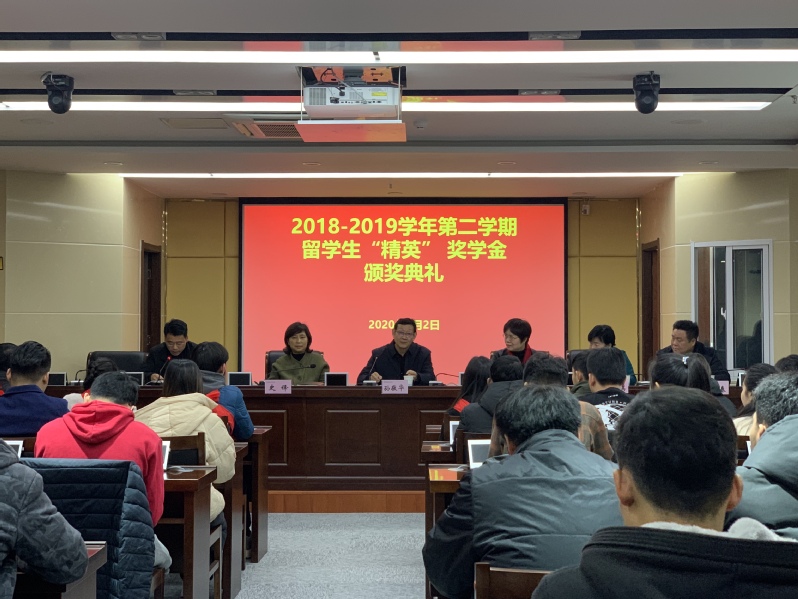 本网讯(国际教育学院通讯员 李婧)1月2日上午,2018至2019年度第二学期柬埔寨留学生“精英”奖学金颁奖仪式在图文信息中心九楼会议室隆重举行。党委副书记、院长孙敬华,党委委员、副校长史锋,合肥精英培训学院校长费然、校外事办领导、机电工程学院领导、国际教育学院领导和工作人员、留学生班主任及全体柬埔寨留学生参加了本次颁奖典礼。典礼由机电工程学院党总支副书记胡坤主持。