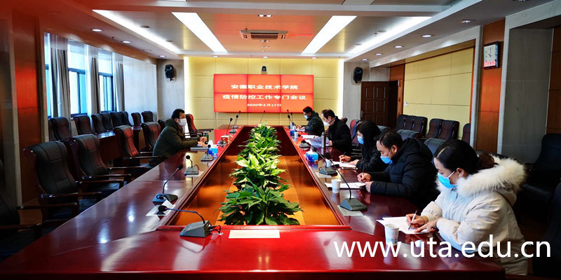 本网讯(校党办通讯员 陈晓春)2月17日,学院在九楼会议召开了新型冠状病毒感染肺炎疫情防控工作专题会议,就贯彻落实《中共安徽省委教育工委 安徽省教育厅关于做好新冠肺炎疫情防控期间高校及时组织线上开学的通知》(皖教工委函〔2020〕23)文件精神进行部署和安排。学院党委书记亓四华出席并主持了会议。学院疫情防控办(后勤管理处)、办公室、党委宣传部、学生处、马克思主义学院等相关部门负责人参加了会议。
