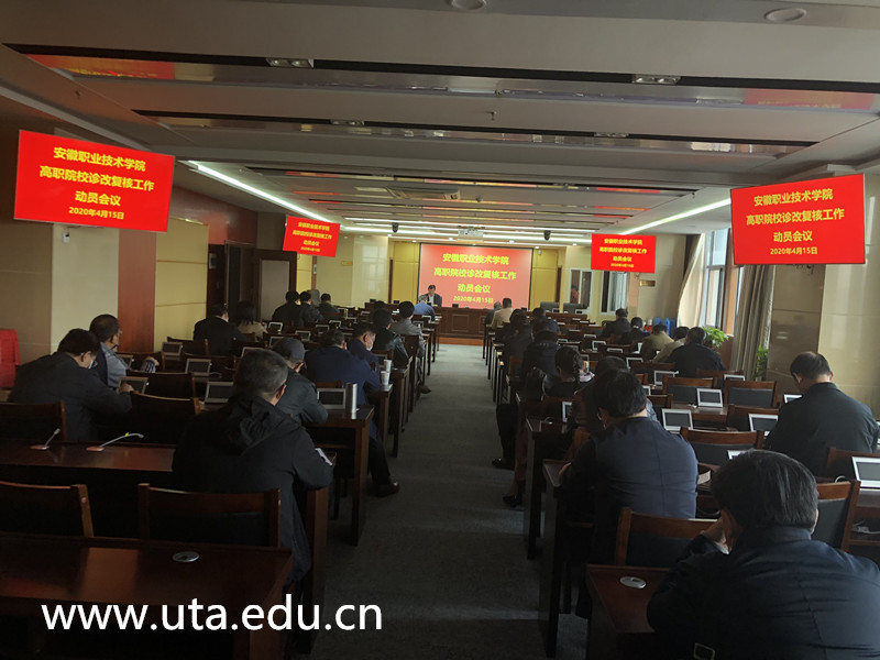 本网讯(质量管理处通讯员 杜兰萍)4月15日下午,学院在九楼视频会议室组织参加省教育厅主办的高职院校内部质量保证体系诊改复核工作培训视频会,并召开了学院诊改复核工作动员会。校长孙敬华参加了培训会,并做动员讲话,各职能部门主要负责人、各二级院部党政主要负责人参加会议。