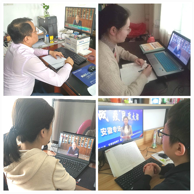 本网讯(通讯员 教务处 李德明 马克思主义学院 李祥祥)战“疫”期间,安徽涌现出大批先进典型、凡人善举、感人故事以及创新做法。这对于广大师生而言,都是鲜活而宝贵的思政教材。4月23日下午,由中共安徽省委宣传部、中共安徽省委教育工委、安徽省教育厅与人民网联合举办的“同上一堂战‘疫’思政大课”安徽专场在“云端”开讲。学院领导高度重视,认真落实省委教育工委和教育厅的部署要求,组织学院教务处、学生处、马克思主义学院,思政课教师,辅导员、班主任和全体学生抓住这次思想升华的良好契机,共上了一堂战“疫”思政大课。