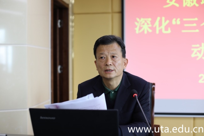 纪检监察处处长蒋成义对《安徽职业技术学院深化“三个以案”警示教育实施方案》进行解读,并对学院深化“三个以案”警示教育的具体安排进行了说明。