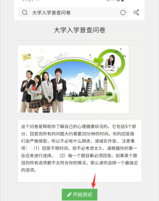 为进一步落实教育部和省教育厅有关文件精神,更好地开展我校心理健康教育工作,根据国家卫健委印发的《新型冠状病毒感染的肺炎疫情紧急心理危机干预指导原则》,学院专门为2019级返校学生开通在线心理测评服务,帮助同学们及时了解心理健康状态,以良好的心理状态适应新学期的学习、生活。请各二级学院通知本院学生按时参加测试。