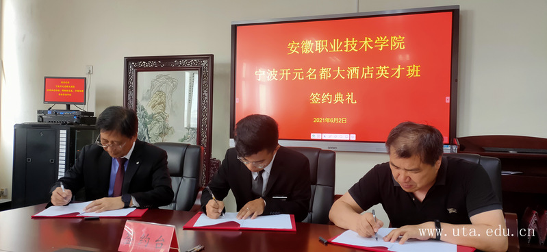 管理学院2020级酒店管理专业“现代学徒制”校企合作办学协议于62日顺利签署,此次参与2020级合作办学的企业为合肥香格里拉大酒店和宁波开元酒店管理有限公司。签约仪式分别于合肥香格里拉大酒店和我校管理学院举行,管理学院院长刘玉杰代表校方参加了签约仪式,并签署了合作协议,合肥香格里拉大酒店总经理宋善文、宁波开元酒店管理有限公司总经理来荣法代表企业参加仪式并签署了合作协议。