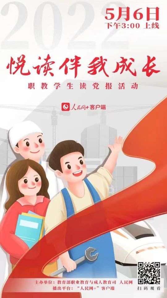 党报像一扇窗,让我们看到精彩世界!5月6日(周五)下午3:00—4:00,教育部职成司、人民网将以线上会议形式举办“悦读伴我成长”职教学生读党报活动启动仪式。根据会议有关文件要求,现将组织观看“悦读伴我成长”职教学生读党报活动启动仪式的相关工作通知如下: