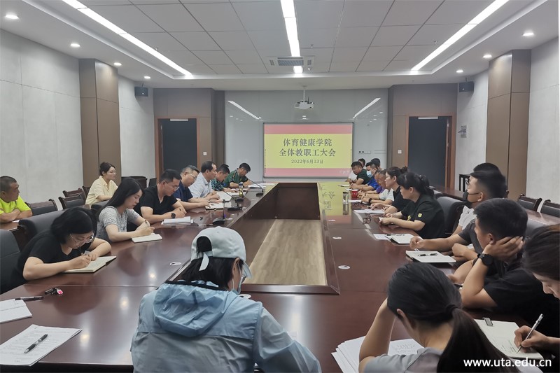 为全面总结本学期工作, 6月13日下午,体育健康学院在体育馆四楼会议室召开全体教职工大会。党委委员、体育健康学院院长马纯参加会议,体育健康学院党总支书记张在腾主持会议。