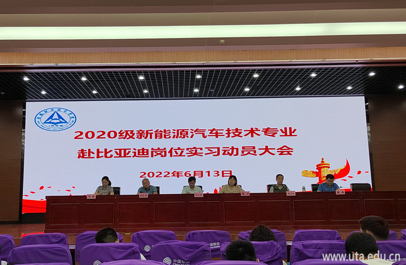 6月13日下午,汽车工程学院在图文信息中心三楼报告厅举行2020级新能源汽车技术专业赴比亚迪岗位实习动员大会。汽车工程学院党总支副书记周宁、副院长汪功明、学院全体教师、团学干部及2020级新能源汽车技术专业全体学生参加会议。会议由周宁主持。