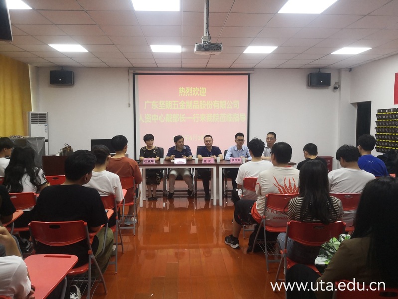 6月14日下午,广州坚朗五金制品股份有限公司人资中心部长戴成一行来财经商贸学院开展第三届坚朗现代学徒制班师生见面会并与第二届坚朗现代学徒制班学生签订跟岗实习三方协议。财经商贸学院党政班子成员、相关老师及两届坚朗班42名学生参加了会议。