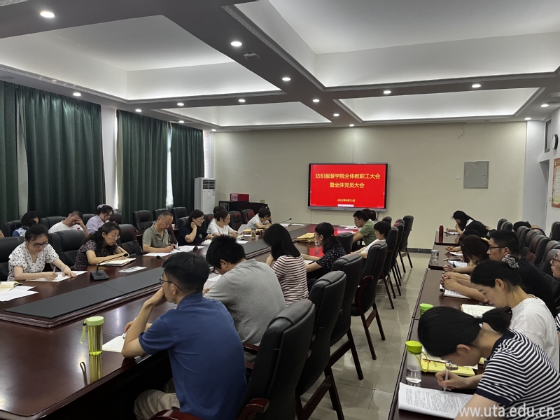 6月15日中午,纺织服装学院在纺织楼403会议室召开全体教职工暨全体党员大会。纺织服装学院党总支副书记袁晓玲、副院长张文徽、组织员汪煦和全体教职工参加会议,会议由袁晓玲主持。