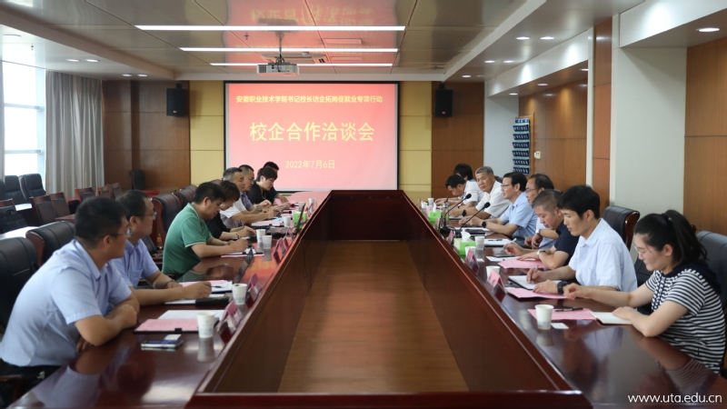 本网讯(机械工程学院通讯员 陈丽萍)为进一步深化校企合作,有效推进产教融合,创新人才培养模式,为毕业生高质量就业搭建平台,7月6日下午,智能制造学院邀请日立电梯安徽分公司、安徽福来机械设备工程有限公司、青岛特锐德电气股份有限公司合肥办事处、合肥国轩电池科技有限公司等4家企业来院洽谈毕业生就业、校企合作事宜。党委副书记、院长孙敬华,智能制造学院党总支书记陶新南、副书记郝进平,副院长桂树国、常辉及相关教师代表参加会议,会议由陶新南主持。