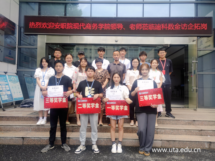 在安徽迪科数金科技有限公司的座谈会中,企业为我院“优秀实习生”王皖铭、何箐、杨海弟与闫瑾颁发证书与奖学金,优秀实习生依次与20级跟岗实习学生分享了工作经验。