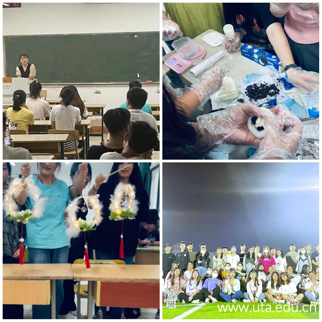 巧手承习传统,情满欢度中秋。会展2122班在教室里进行了“欢乐度中秋,巧手习传统”主题活动,班级全体同学参与。活动中,班长徐娟给同学们简单介绍了中秋节的来历,详细讲解并示范了月饼和花灯的完整制作过程。随后,同学们有条不紊地进行手工制作,称重、搓皮、填馅、做造型;折灯壳、贴灯饰、穿流苏、系灯杆,各个忙得不亦乐乎。少顷,一个个色泽鲜艳的月饼、一盏盏寓意美好的花灯呈现在眼前,大家看到自己亲手制作的成品,喜上眉梢,乐在心头,教室里充满了欢声笑语。在班委前期的精心筹备、合理分配下,此次活动圆满完成。同学们纷纷表示,通过动手制作月饼和花灯,深刻感受到传统节日的氛围。