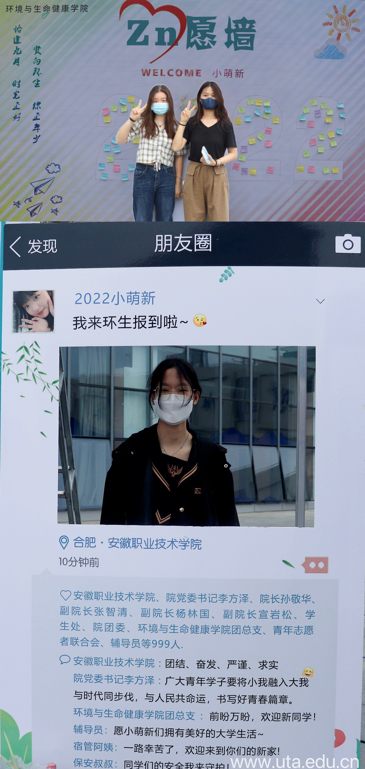 沐金风,杏坛披锦绣;育清韵,学子谱新篇。本次迎新工作的圆满结束也寓意着新学期、新气象、新征程。环境与生命健康学院正在给2022级萌新们装上梦想的翅膀,助力飞向向往的远方,前途似海,终有回甘,2022级小萌新们定会在安职遇见更好的自己!(环境与生命健康学院 章婧婷)