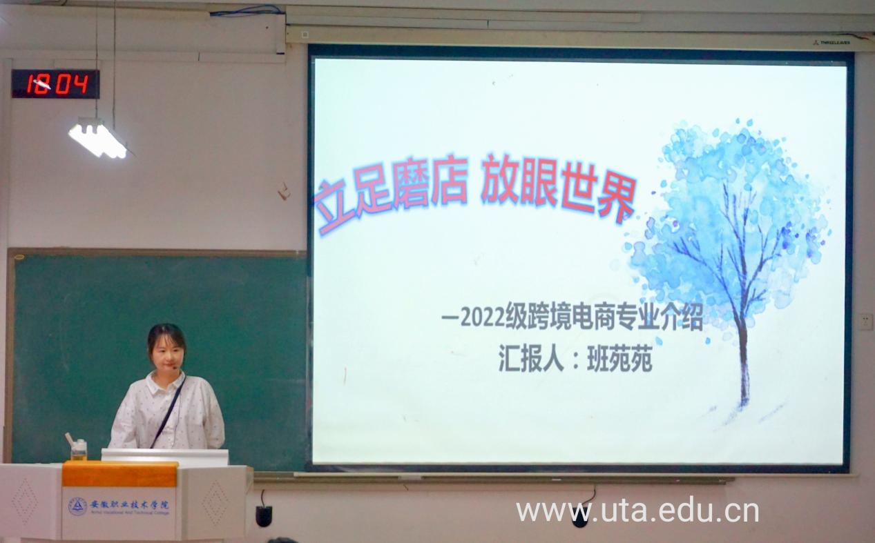 为增加新生对所学专业的认识和了解,让他们更快地明确学习目标与方向,合理规划大学生活,9月17日,现代商务学院顺利组织召开2022级新生专业介绍会。刘义华、王婷婷、班苑苑、丁娟娟和王晓伟等五位学院老师分别对电子商务、跨境电子商务、市场营销和现代物流营销四个专业进行了精彩介绍,现代商务学院副院长杜淑琳、校企合作单位安徽邻几便利店有限公司人事部经理李辉及2022级全体新生参加本次介绍会。