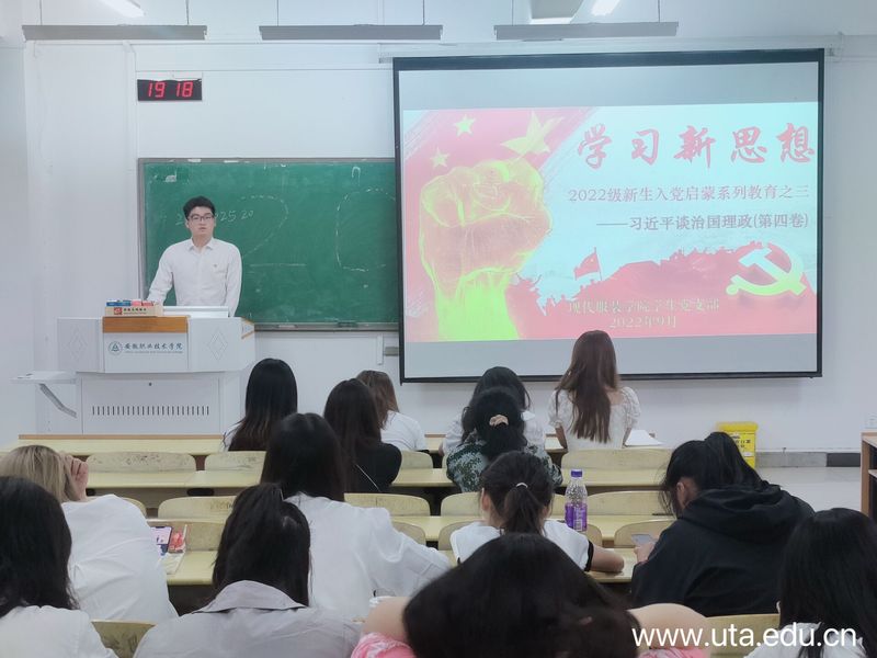 入党启蒙教育是新生入学教育的重要内容,是大学生树立正确的世界观、人生观和价值观的第一课。为加强大一新生对中国共产党的认识,提高思想觉悟,端正入党动机,激发入党积极性,近期,现代服装学院学生党支部持续开展对2022级新生的入党启蒙教育,活动分为五讲,均由学生党员主讲。