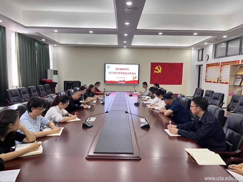 9月29日上午,现代服装学院在纺织楼403会议室召开2022年下半年安全工作会议,学院党政负责人、组织员、教研室主任、全体辅导员、实训员、保卫处安全联络员尹徽徽参加会议。会议由现代服装学院党总支副书记袁晓玲主持。