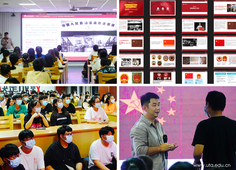 为庆祝中华人民共和国成立73周年,厚植广大学生的爱国情怀,营造良好的育人氛围,以更饱满的精神面貌迎接党的二十大胜利召开,10月1日晚,艺术与创意学院党总支于图文信息中心五楼会议室开展“一人一品”特色党建品牌之“哲思艺站”第一期活动——《国旗国徽设计简史,跟着先辈学设计》。活动由学院党总支副书记杨哲主讲,100余名假期留校学生参与。