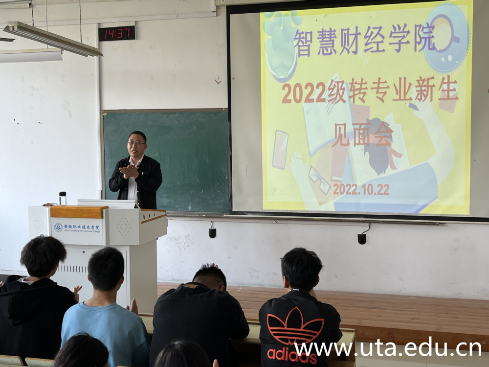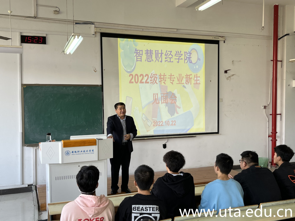 随后,刘玉杰向全体转专业新生介绍了学院发展历史、专业设置、师生规模、人才培养等。他强调,同学们要以国家富强、人民幸福为己任,胸怀理想、志存高远,不负韶华,努力学习,不但要加强专业理论知识的训练,把握专业的差异性,开启专业的新篇章,更要积极参加科技竞赛、社会实践等活动,展示智慧财经学院学子风采。