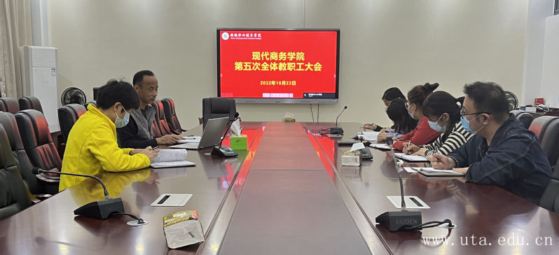 为落实学院关于教学工作相关要求,进一步做好疫情防控工作,10月23日晚,现代商务学院召开全体教职工大会,会议采用线上、线下相结合的方式进行。会议由现代商务学院党总支负责人许兴旺主持。
