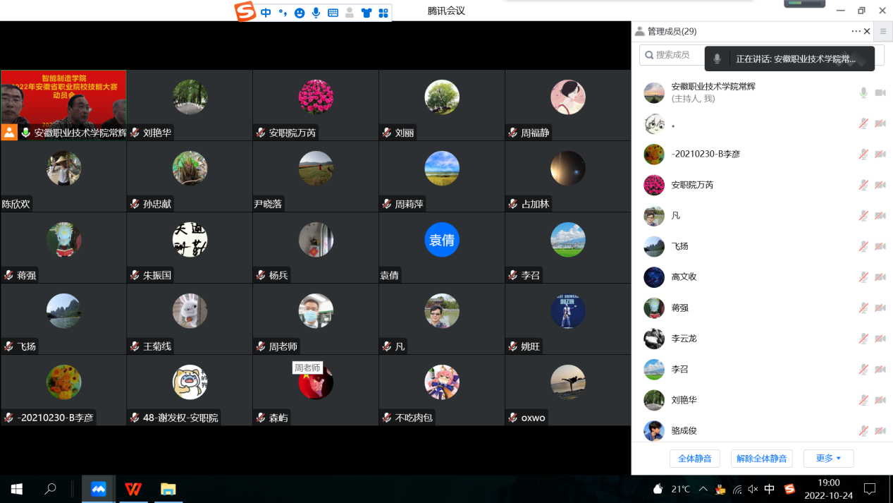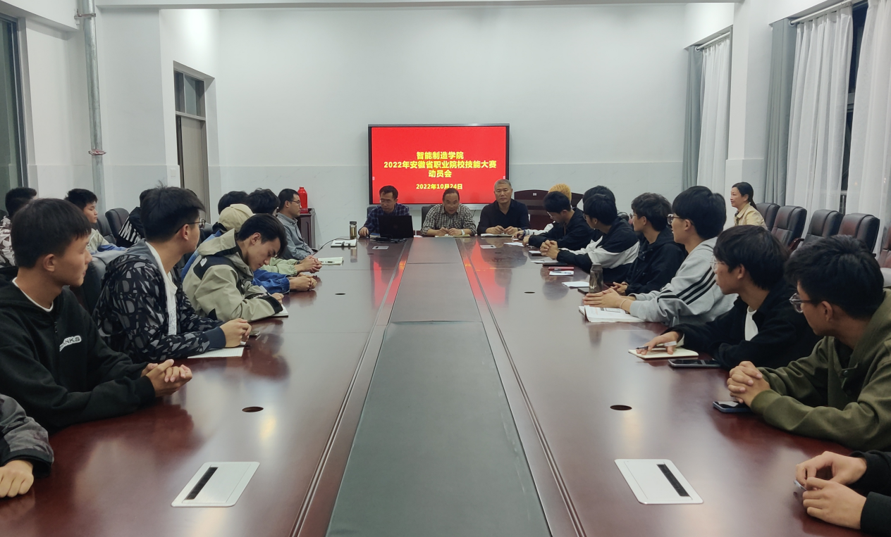 为做好省赛各赛项备赛工作,提高各参赛队训练水平,智能制造学院于10月24日下午在致中404室召开2022年安徽省职业院校技能大赛动员会,会议采用线上和线下相结合的方式,智能制造学院党总支书记陶新南、副院长桂树国、副院长常辉、副院长张作胜和各赛项指导老师和参赛队员参加会议。会议由陶新南主持。