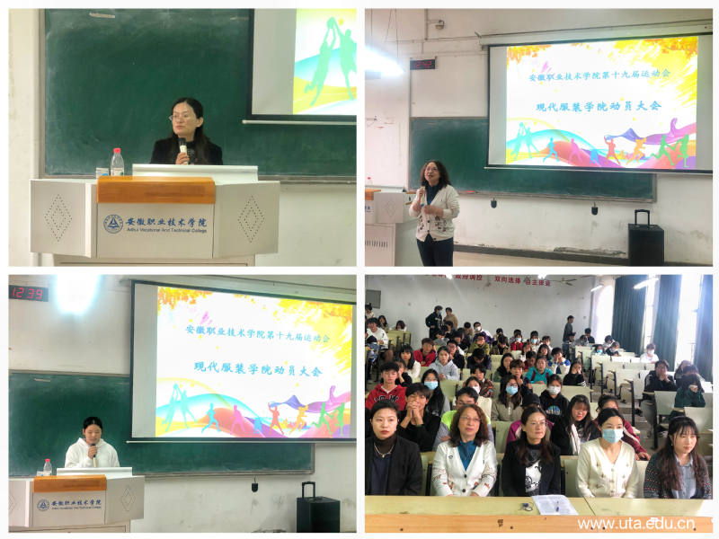 在安职院第十九届田径运动会到来之际,为充分调动运动员积极性,保障比赛期间各项服务工作有序进行,10月31日中午,现代服装学院在电教楼102室召开运动员赛前动员大会,学院党总支副书记袁晓玲、副院长张文徽、专职辅导员代表及全体运动员、志愿者参加动员会。
