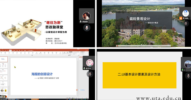 为深入学习贯彻习近平总书记关于教育的重要论述和全国教育大会精神,落实中共中央、国务院《关于新时代加强和改进思想政治工作的意见》,根据教育部《高等学校课程思政建设指导纲要》要求,结合《第二届“课程思政”教学案例设计比赛实施方案》及疫情防控工作的实际要求,艺术与创意学院“课程思政”教学案例设计比赛通过线上评比的方式,于11月2日下午两点开始,经过两个半小时的精彩展示,圆满落下帷幕。比赛由艺术与创意学院副院长吕慧主持。
