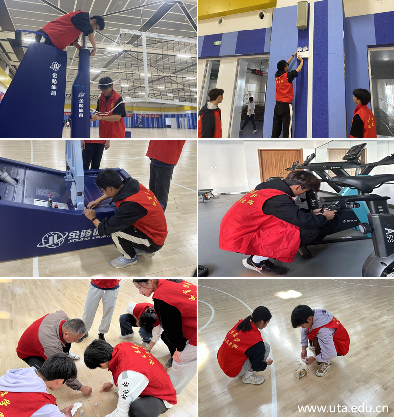 同学们分工明确,互相配合,工作现场井然有序。对体育馆一楼训练设施、二楼健身房运动器材进行了全面排查、调试和保养,有效避免了设施、器材螺丝松动、润滑不畅等问题,确保健身器材安全牢固、可靠耐用;同时对三楼篮球馆运动地板进行了清理养护,对四周可伸缩座椅进行了擦拭清洁。