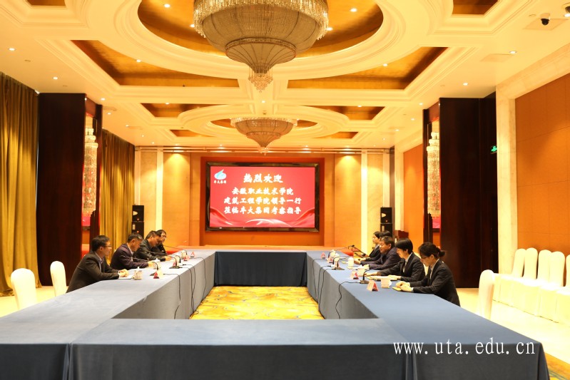 为进一步深化职业教育教学改革,全面推进产教深度融合,更好地为区域产业发展服务,11月10日上午,建筑工程学院党总支副书记陈传胜、副院长蒋庆华、团总支书记孟飞龙及辅导员程义进赴合肥丰大集团洽谈建筑相关专业校企合作事宜,受到集团董事长吴大香、总经理董吉梅等领导的热情接待。双方就建筑工程相关专业校企合作事宜展开深入交流。