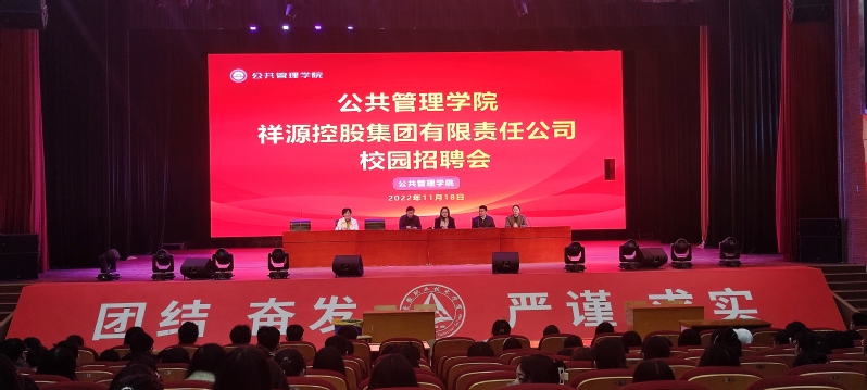 为搭建高校毕业生求职就业平台,促进大学生更高质量就业,11月18日,公共管理学院在安职院大礼堂举办2023届毕业生就业宣讲和就业招聘会,学院党政负责人闫冰、张祎、杨珍和毕业班辅导员参加招聘会。祥源物业助理总经理文娟、 人才发展经理章亭、祥源文旅花世界人力行政经理杜巧玉和2022届入职的毕业生代表等参加招聘会作宣讲活动。