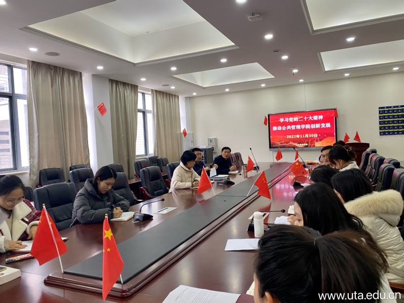 11月30日下午,公共管理学院党总支召开全体党员、全体教职工大会,专题学习党的二十大精神,并就公共管理与服务专业群的创新发展进行了交流和研讨。