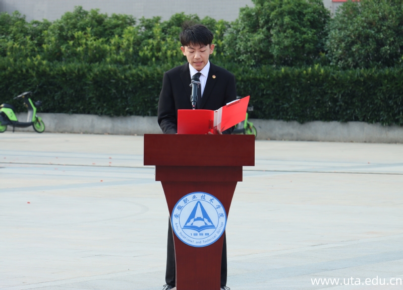 学生代表软件2222班徒向群以《感悟思想伟力 绽放信仰光芒》为题进行国旗下的演讲。他的演讲体现了当代大学生积极向上的精神面貌,并庄严承诺作为安徽职业技术学院的学子,在日后的工作学习中坚持理论学习,始终做到“眼中有光,脚下有路、肩上有责,心中有德”,为新的使命凝心聚力,踔厉奋发、勇毅前行,为全面建设社会主义现代化国家、全面推进中华民族伟大复兴而团结奋斗!