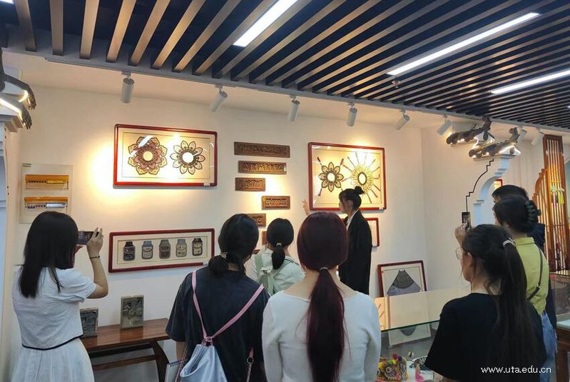 活动中,在场馆讲解志愿者的引领下,师生先后参观了民俗民艺馆、旅游文化体验馆、徽傩文化体验馆、茶艺体验馆、插花馆、剪纸馆和徽韵学堂。通过深入参观,同学们对徽派传统文化有了新的认识和感悟,形式和作用多样的傩面、朗朗上口的民歌和精致细致的剪纸拓宽了同学们的眼界,面对着眼前一件件传统文化瑰宝,心中的文化自信越发坚定,感悟到可以利用专业技术将传统文化内涵现代化和创新化,融入到民众生活中去。