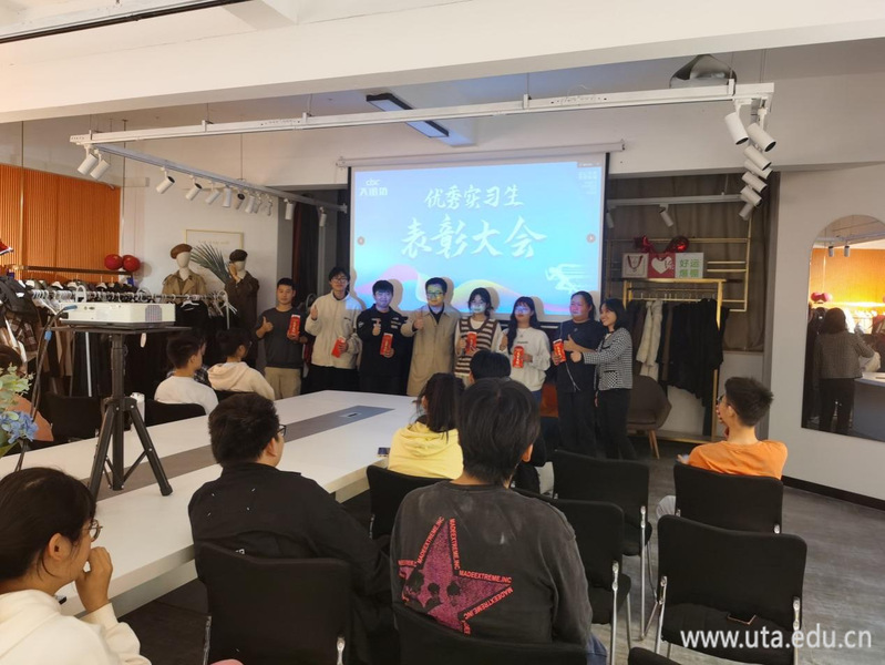 10月10日,现代服装学院副院长张莉带领相关教师赴合肥大闺坊服饰有限公司参加纺织品检测与贸易专业学生实践教学月度总结会暨优秀实习生表彰大会。
