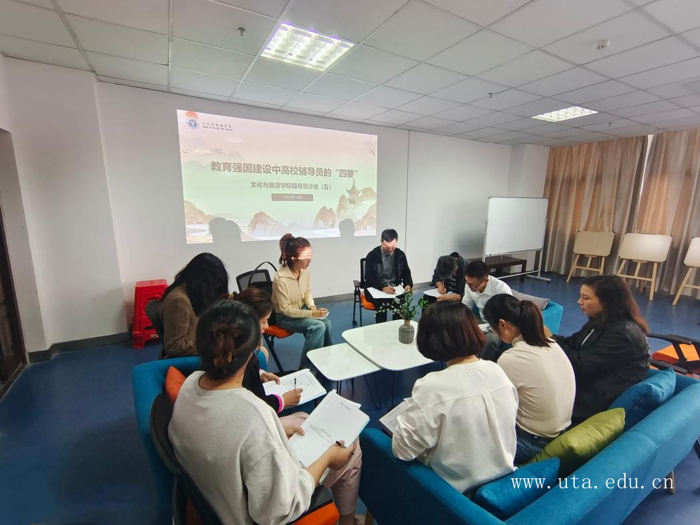 为突出高校辅导员是建设教育强国的中坚力量,扎实做好教书育人工作,10月25日,文化与旅游学院组织开展了第五期主题沙龙活动,围绕学习教育强国建设中高校辅导员的“四要”展开研讨交流。文化与旅游学院党总支负责人徐李莉、组织员伍智鑫和全体专兼职辅导员参加了本次活动。