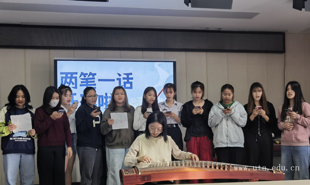 活动中,学生不仅现场展示了自己的钢笔字和毛笔字作品,还用昂扬向上的精神面貌进行了普通话演说。他们或激昂澎湃,或深情脉脉,举止投足间皆表达出对祖国山河的赞美和喜爱之情。来自泰国的留学生们用中文讲述了她们在安职学习生活的体会感悟,表示在安职既学习了专业知识,也融入了丰富的校园生活。最后,留学生以合唱一首《沧海一声笑》表达了对中华文化的热爱。