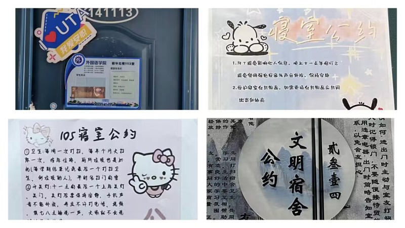 在本次宿舍文化设计大赛中,同学们齐心协力,精心准备了一份份精美的《宿舍公约》,学院老师和评分小组同学们一起深入每个宿舍,分别从宿舍卫生、宿舍安全、宿舍装饰和《宿舍公约》设计等四个方面进行打分,最终评选出一等奖一名、二等奖两名、三等奖三名,另外还特别选出“最文明寝室”“最温暖寝室”以及“十佳寝室”等。